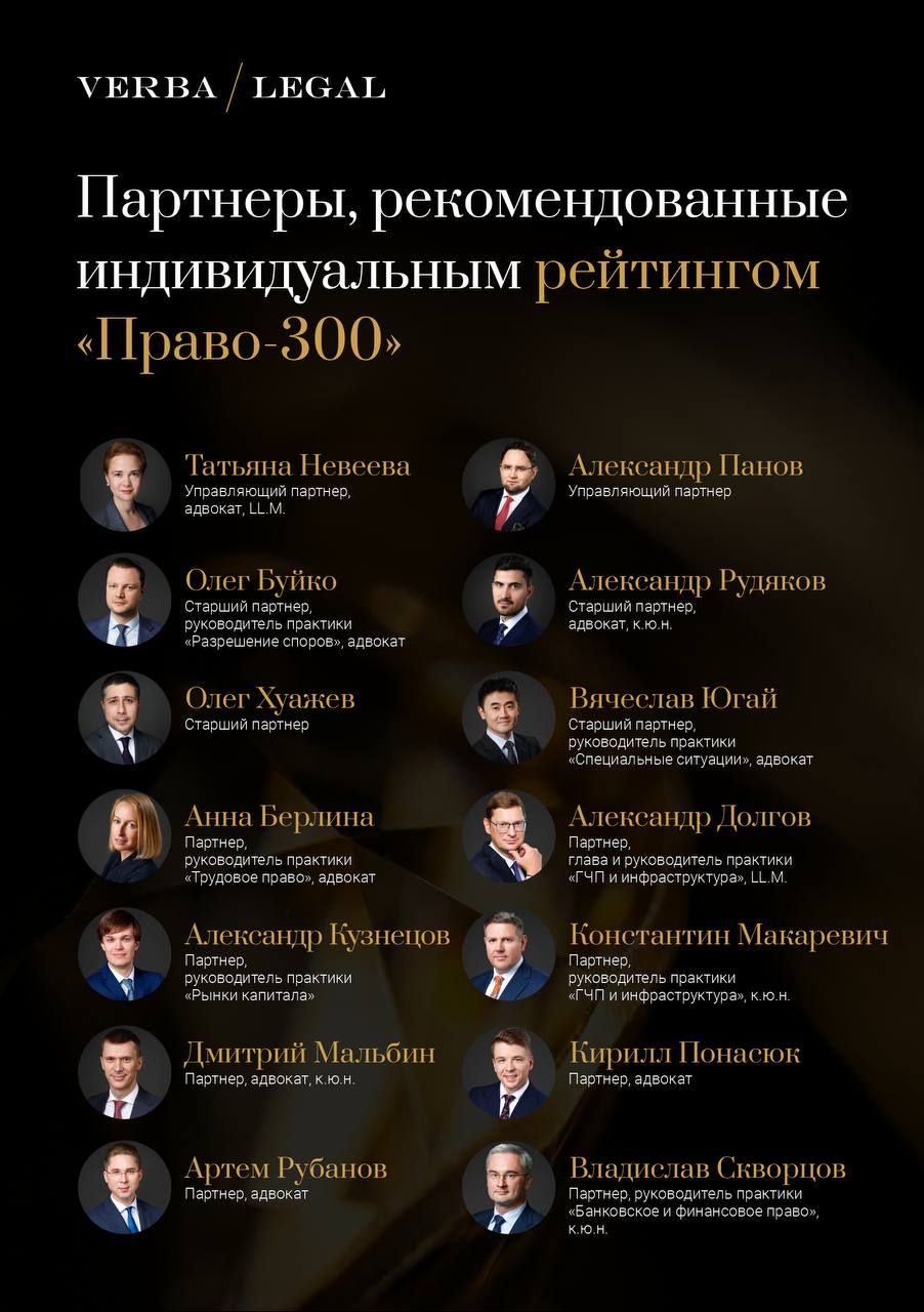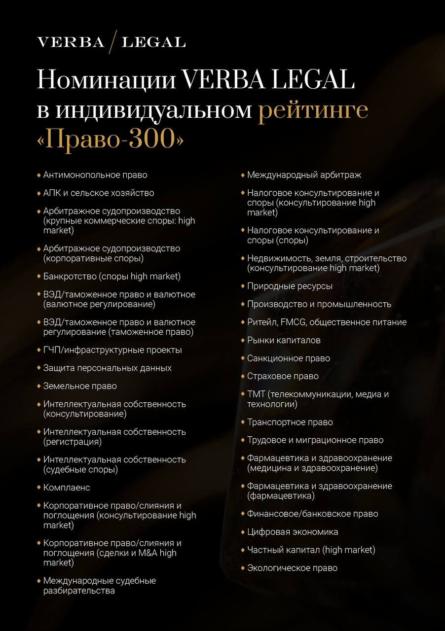 В этом году 51 юрист VERBA LEGAL отмечен в 38 номинациях индивидуального рейтинга «Право-300», что вдвое превышает результаты прошлого года.